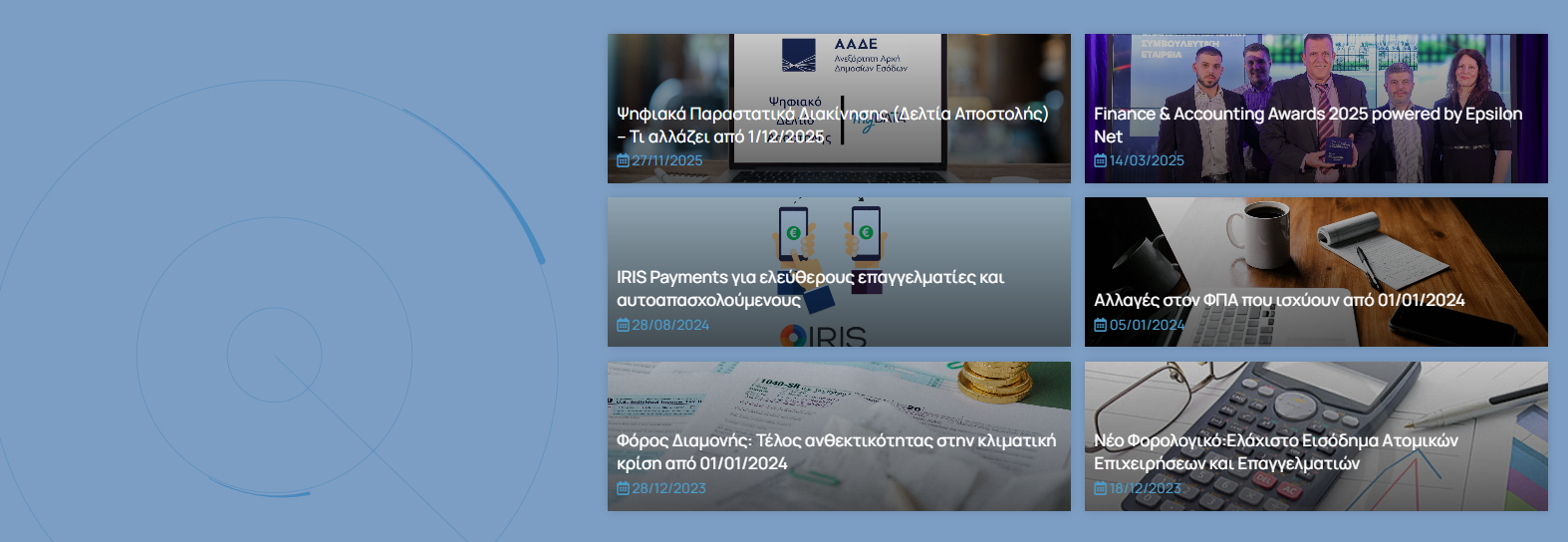 Μια επιτυχημένη επιχείρηση εξαρτάται κατά ένα πολύ μεγάλο βαθμό από τη σωστή καθοδήγηση, συμμόρφωση και άμεση προσαρμογή στο συνεχώς εξελισσόμενο φορολογικό καθεστώς. Βασικό μας μέλημα είναι να σας παρέχουμε βιώσιμες και ρεαλιστικές λύσεις για τη διατήρηση και ασφάλεια της επιχείρησής σας.